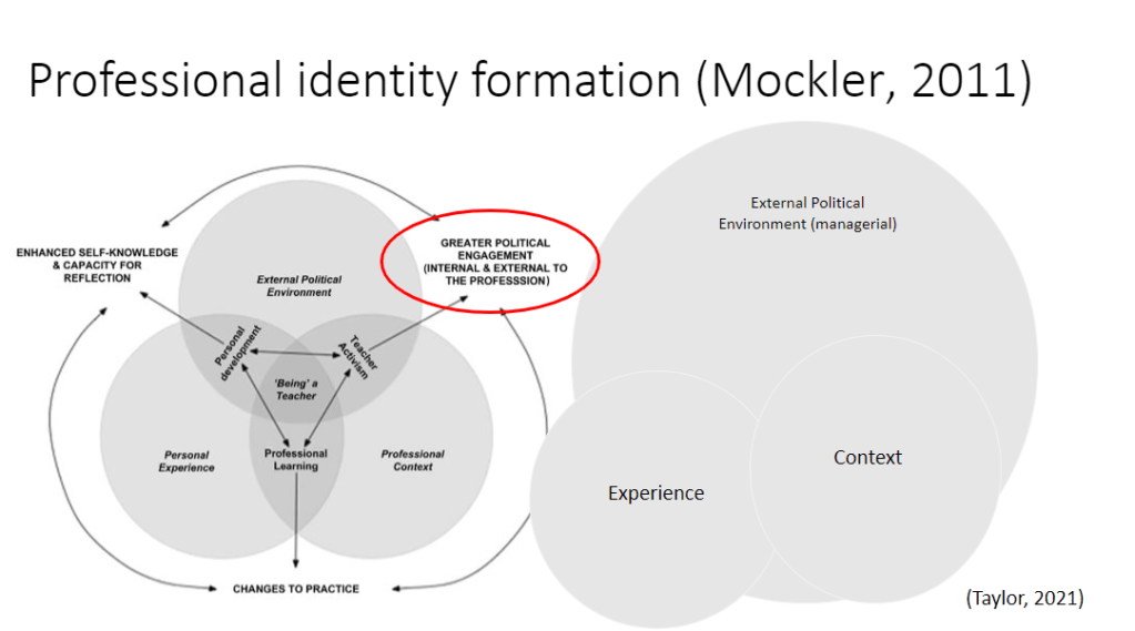 Mockler, N. (2011). Beyond ‘What Works’: Understanding Teacher Identity as a Practical and Political Tool. Teachers and Teaching, 17(5), 517–528. https://doi.org/10.1080/13540602.2011.602059